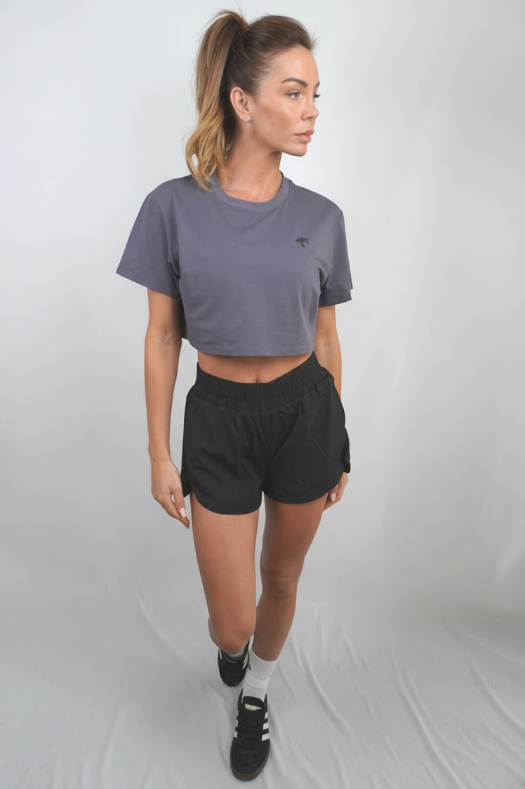 Women’s Cropped Cotton Tee - Storm Grey NEW