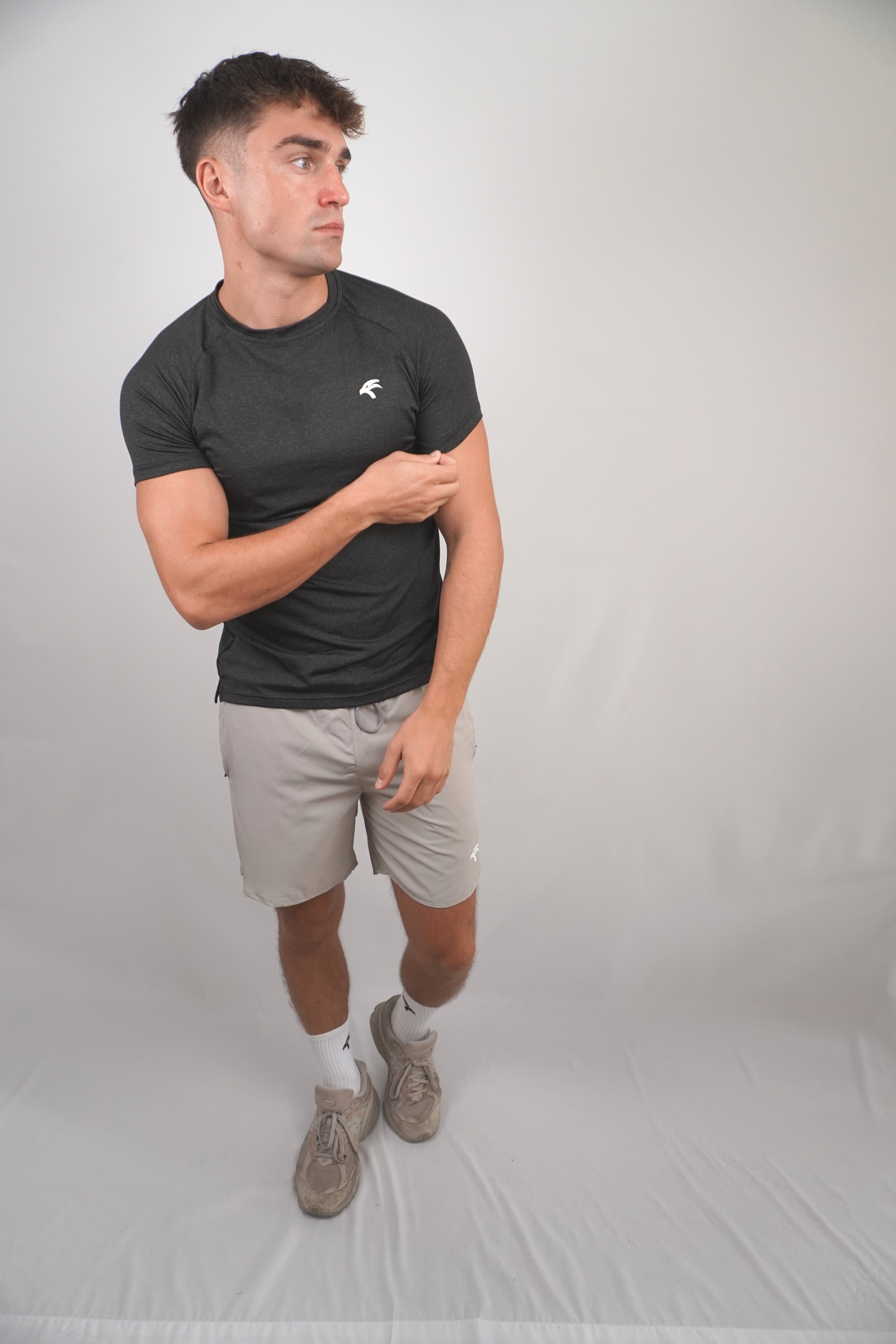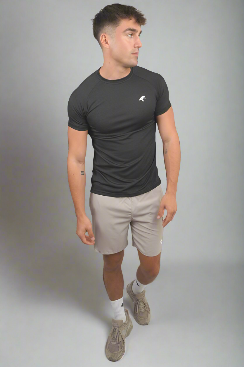 Crafted with an innovative fabric blend, this gym t-shirt ensures optimal breathability, keeping you cool and dry through the most intense workouts. Its advanced moisture-wicking technology guarantees a comfortable experience, whether you're pushing weights or breaking a sweat in a high-intensity session. The modern design, coupled with the iconic GCCo silicone Falcon logo, elevates the Vital Tee from a workout essential to a style statement.