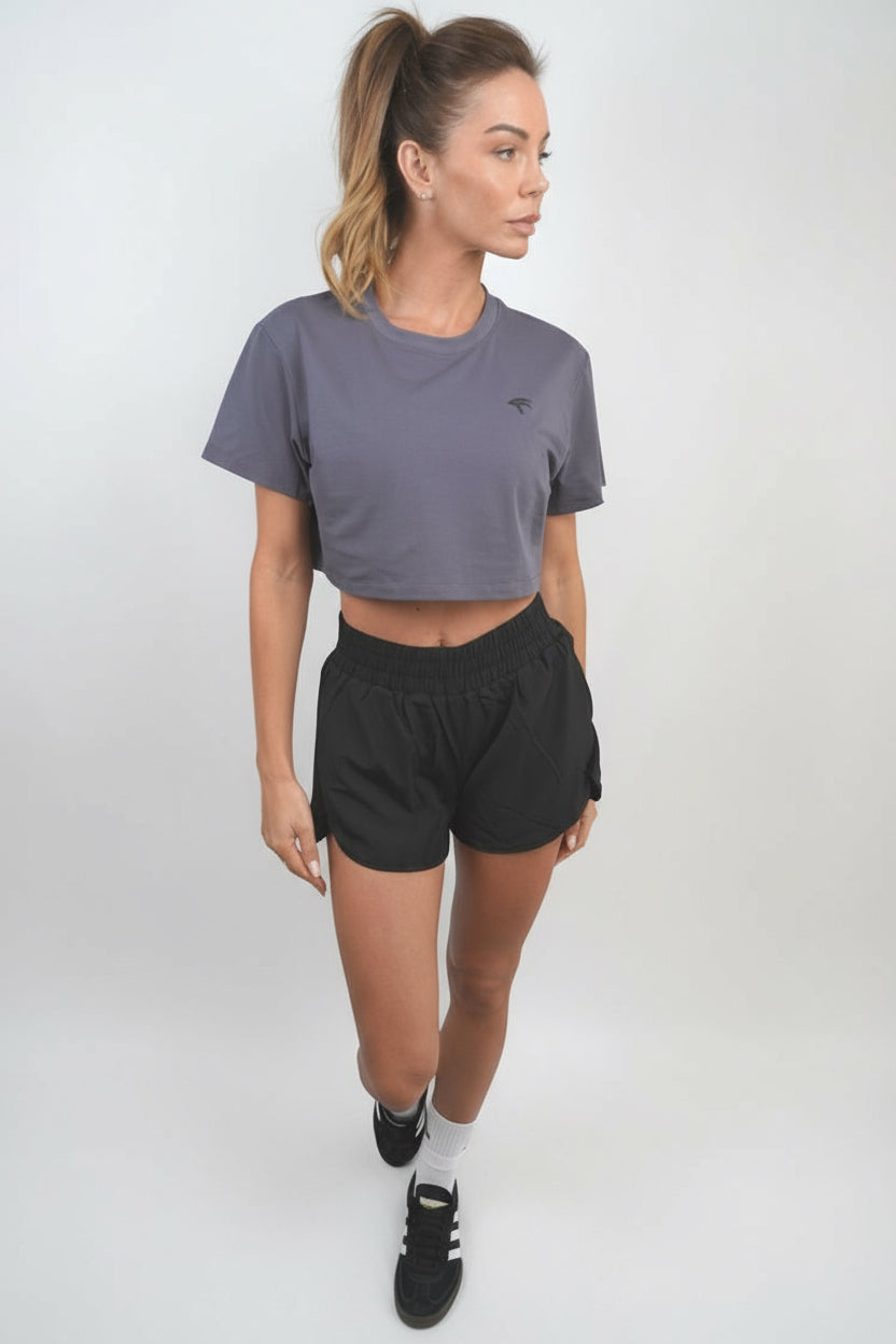 Women’s Cropped Cotton Tee - Storm Grey NEW